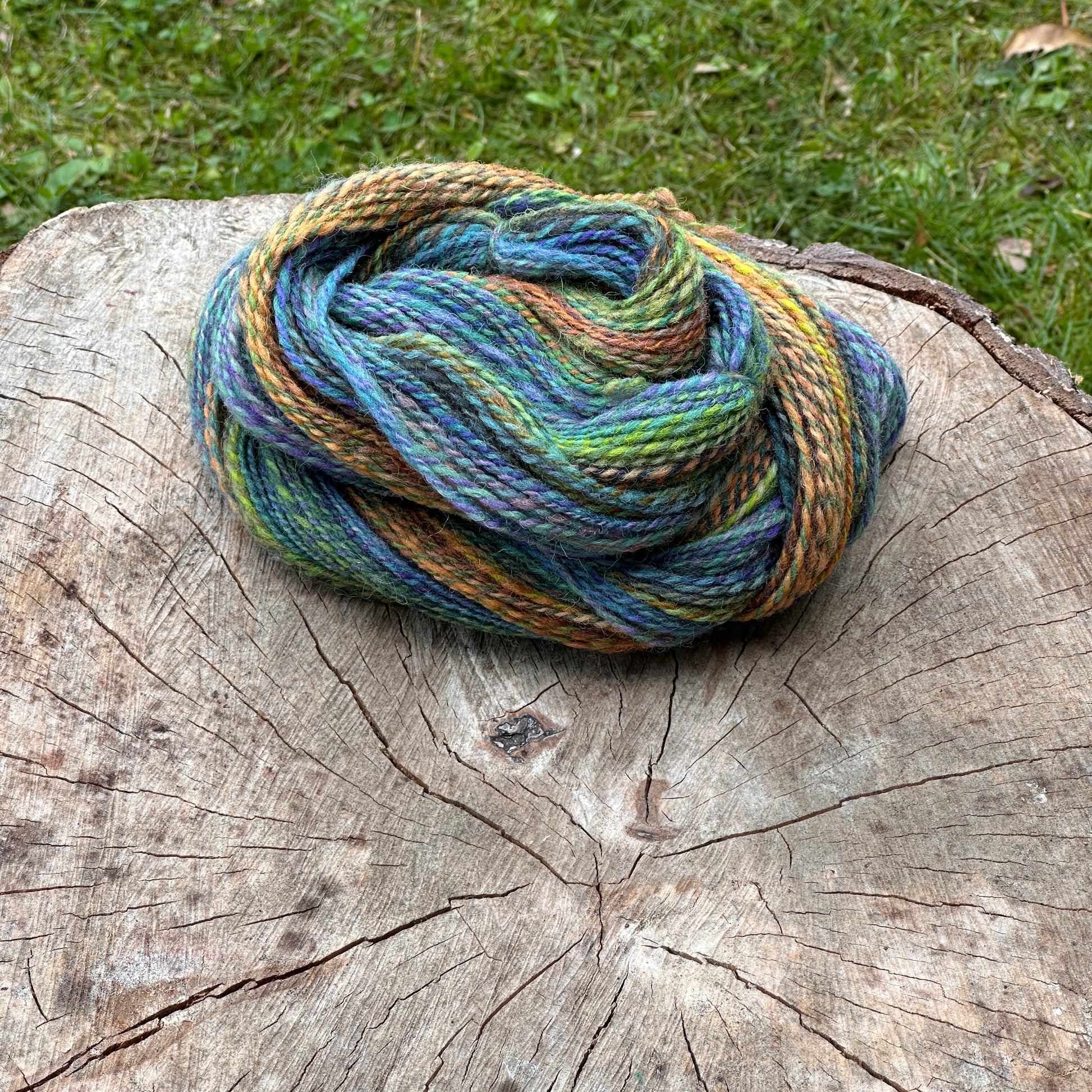 Färgernas proportioner kan variera något mellan härvorna. Skriv en kommentar om det är en särskild härva du är mest intresserad av. Varje härva är i sin tur uppdelad i två mindre härvor eftersom garnet är tvinnat på en liten e-spinner.
