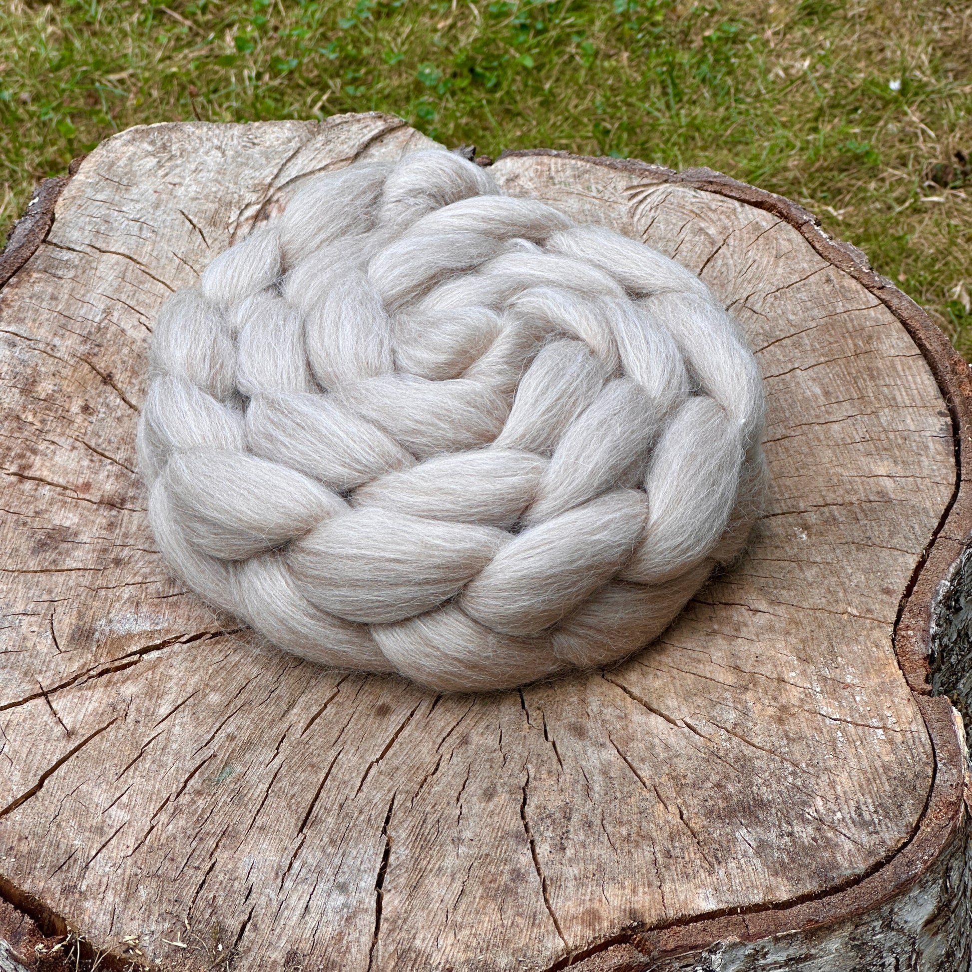 100 gram kammad ulltops i 60 % Haunui Wool som kommer från Taranui, en familjeägd gård i South Canterbury i Nya Zeeland. Blandad med 20% mullbärssilke och 20% vit Baby Alpaca. Ullen är mjuk som merino men med längre fibrer och en dröm att spinna.