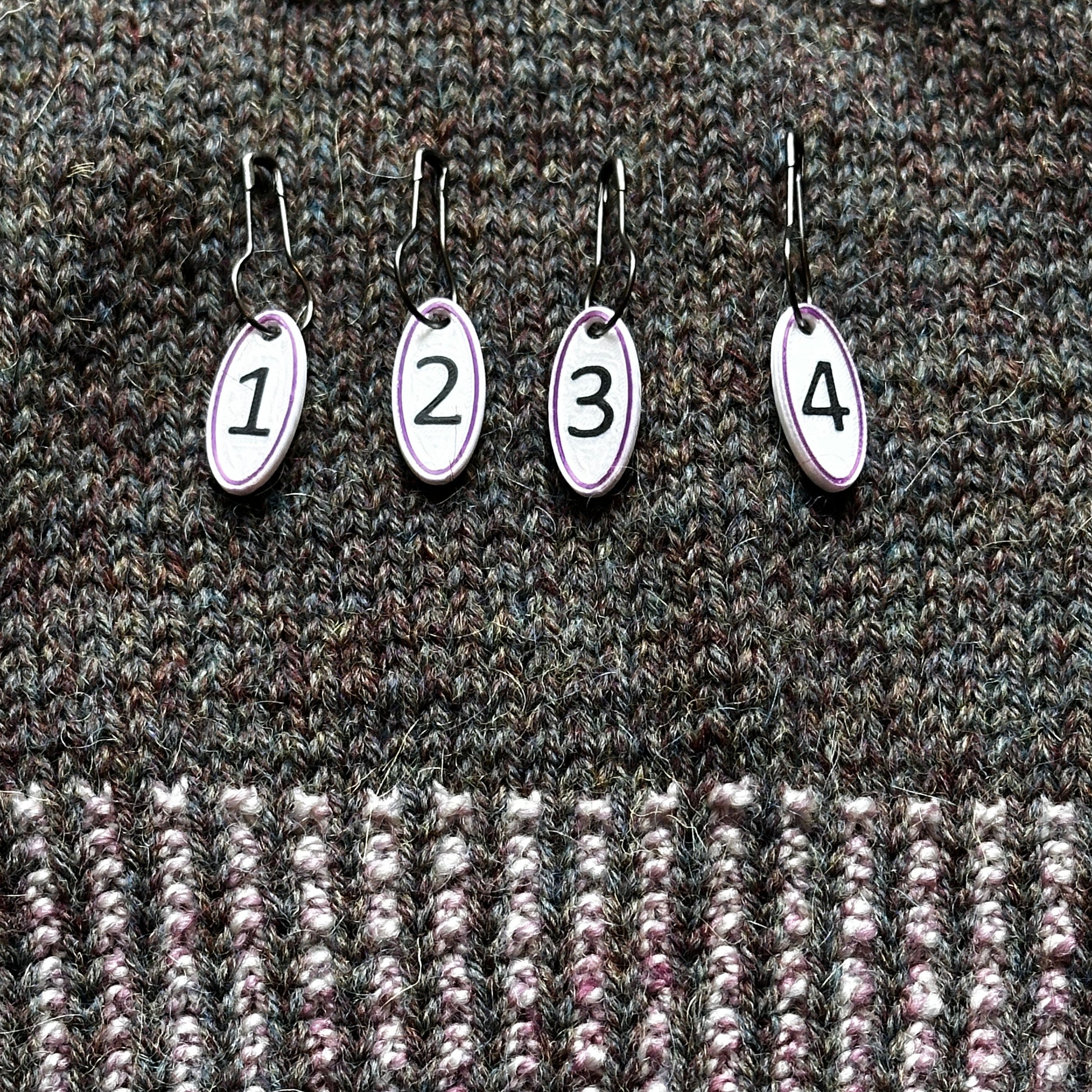 Superpraktiska markörer som hjälper dig att hålla reda på din stickning, t ex raglanminskningar/ökningar. Siffrorna 1-4 säljs som set om 4 markörer.