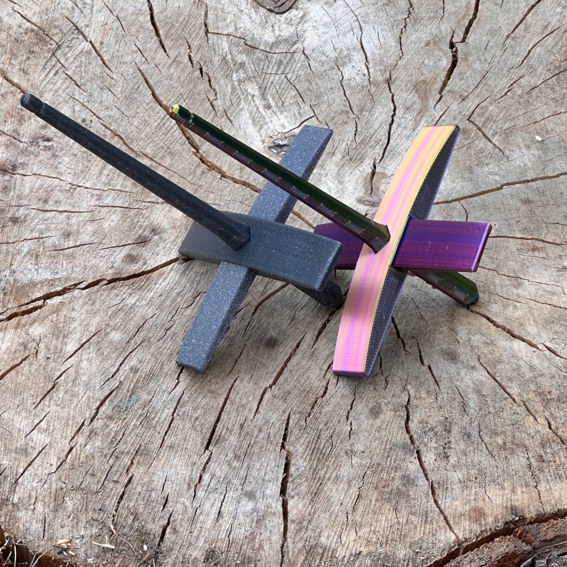 Ziggy Mini är en s k turkisk slända, eller korsslända, en bottentyngd slända med ett kors där man kan nysta på garnet allt eftersom man spinner det. När man sedan drar ut korsets armar har man ett nystan där man når båda ändarna på garnet och kan tvinna garnet direkt.